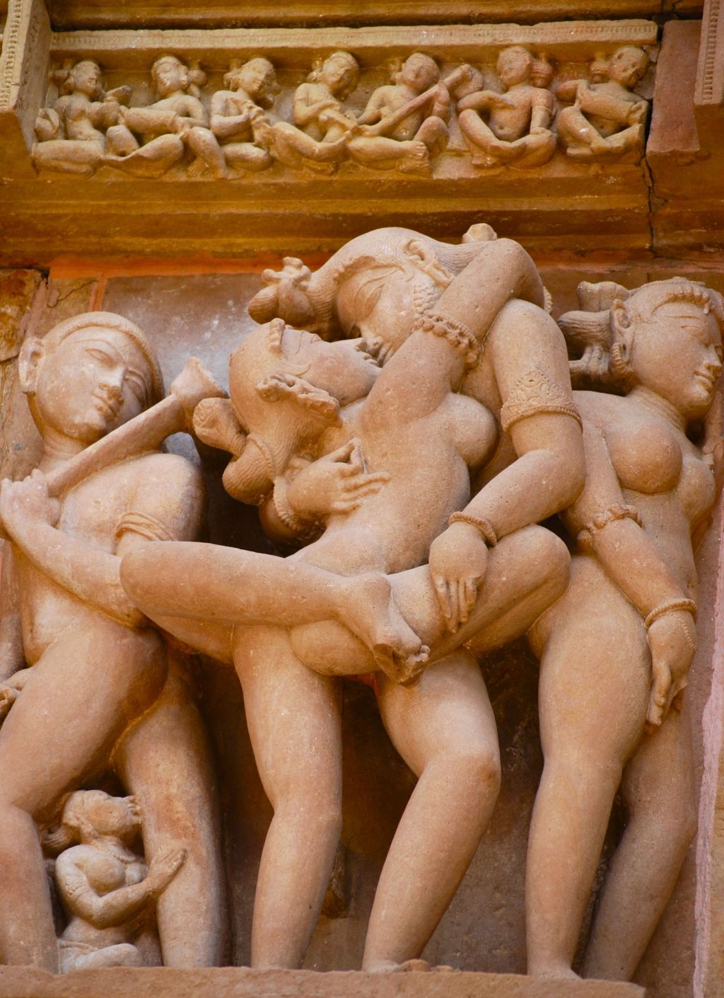 Foto: Unión sexual tántrica representada en un relieve de uno de los templos de Khajuraho, en Madhya Pradesh