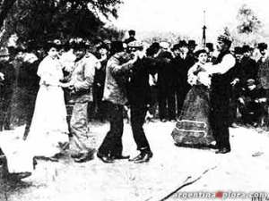 En 1896, en los bailes públicos de la clase media-alta se baila con corte y quebrada, pero los tipos de danza son todavía variados: habanera, milonga, polka, mazurca.