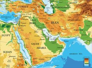 Fig. Mapa físico, político y relieve de Oriente Medio
