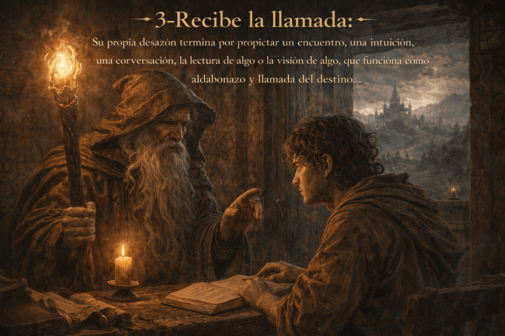 3. La llamada. Un recuerdo olvidado, un objeto heredado de tus antepasados, un paisaje… algo le dice al protagonista que debe de salir de su inmovilidad.