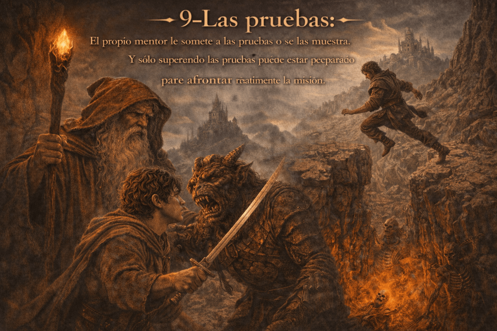 9. Las Pruebas. El mentor te orienta y entrena preparándote para las dificultades del camino.
