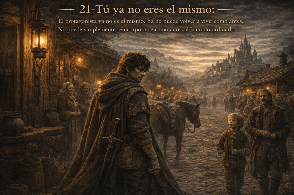 21. Ya No Eres el Mismo. El protagonista ya no puede volver a vivir como antes, se siente un extraño. No conecta con costumbres que ahora le parecen bárbaras.