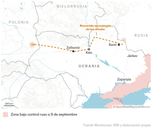 Fig. Supuesta trayectoria del dron recogido en Polonia en 2025